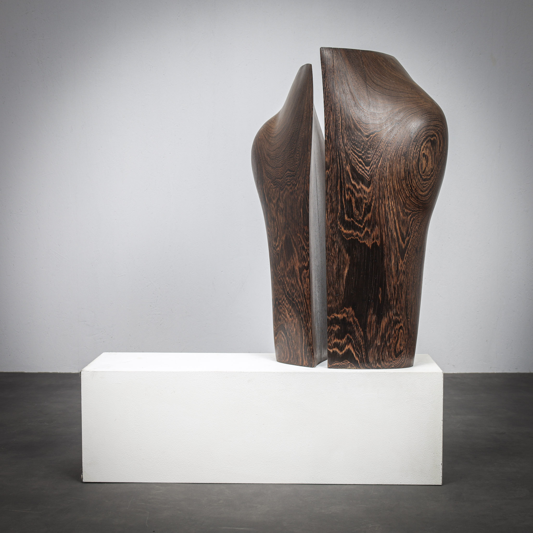 Placed together, the two sculptures create a quiet conversation of form and rhythm a composition that reflects Van Zuuren’s exploration of organic abstraction and the expressive potential of solid wood.