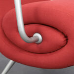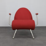 The Chiocciola lounge chair, designed by Roberto Semprini in 1994 for Arredaesse, is a distinctive example of Italian postmodern design from the 1990s. Its name meaning “snail” refers to the spiral form integrated into the side of the seat, where structure and ornament resolve into a single sculptural gesture.