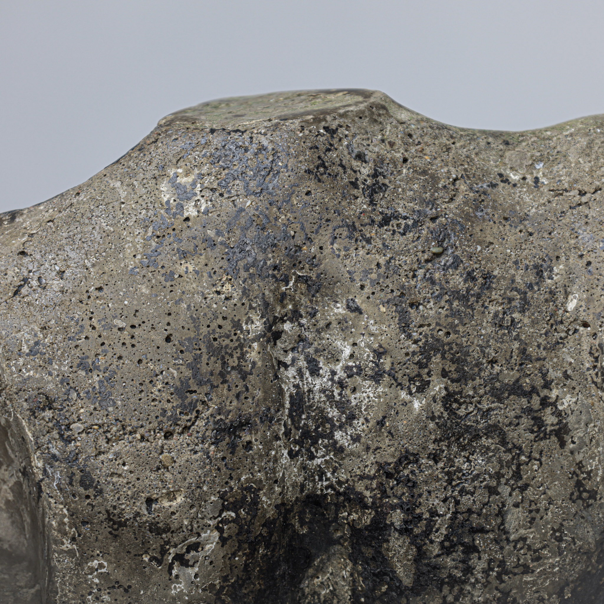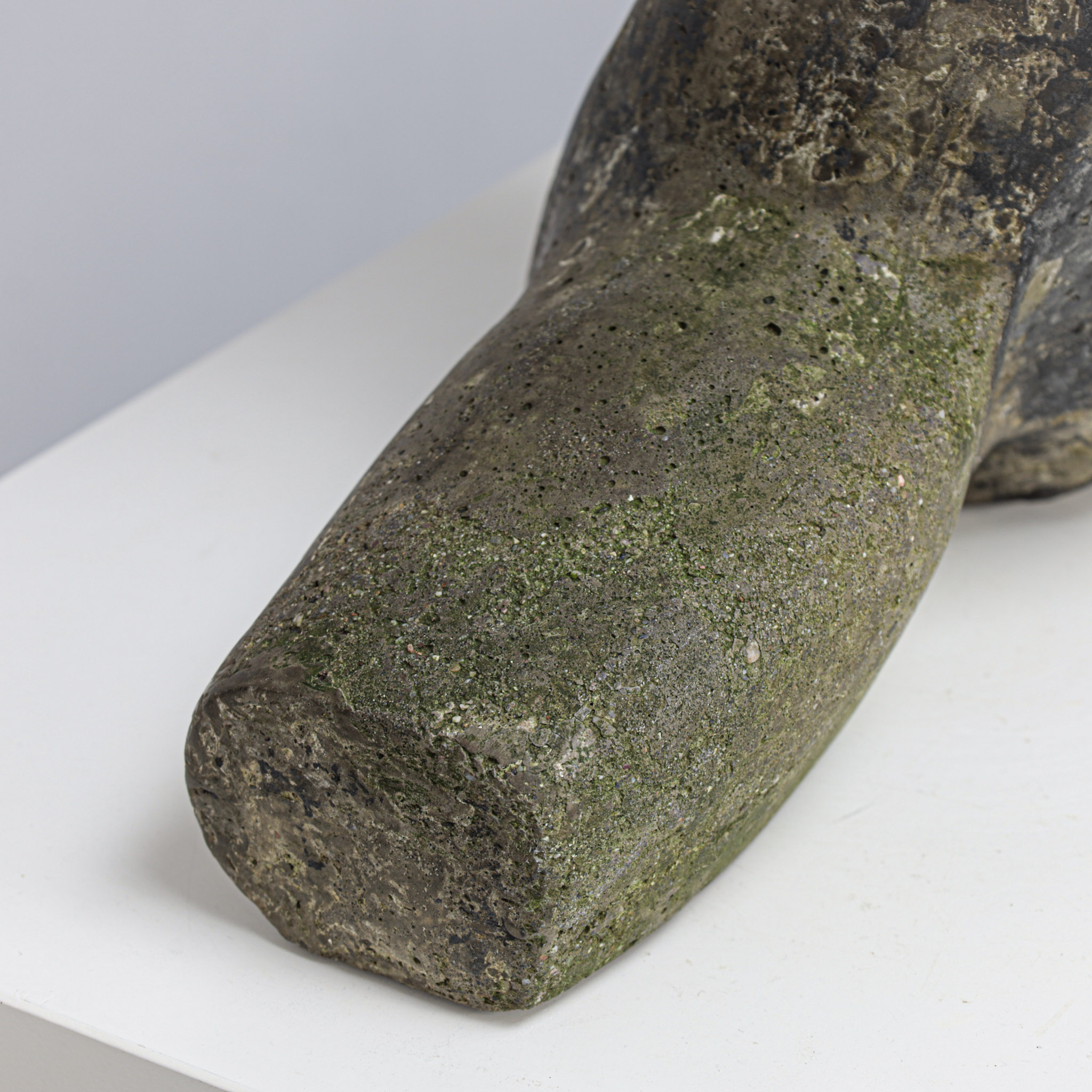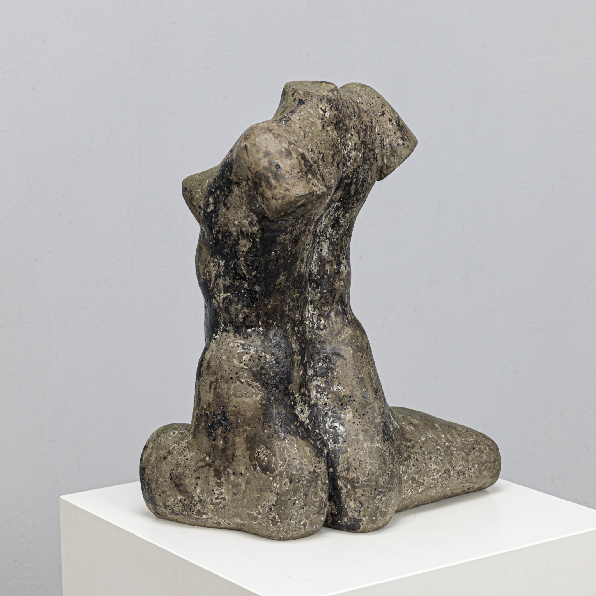 This expressive female torso sculpture by Francine Govers, created in the Netherlands in the 1990s, reflects a raw and introspective approach to the human form. Executed in concrete, the work balances weight and vulnerability, reducing the body to essential volumes while retaining a strong emotional presence.