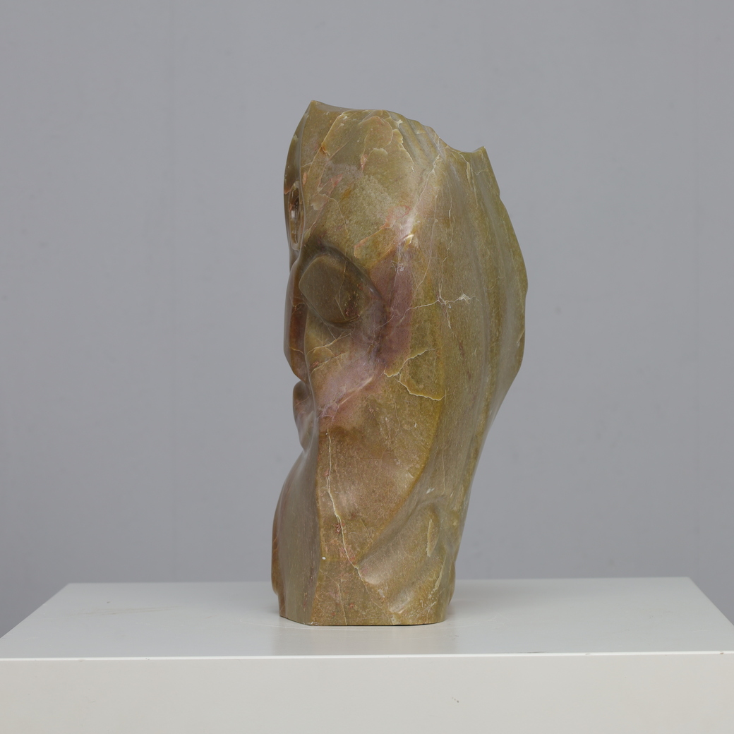 This powerful marble head sculpture reflects the influence of Cubism, the groundbreaking movement pioneered by artists such as Picasso and Braque. With its intersecting planes, faceted geometry, and abstraction of the human face, the piece captures the essence of early modernist experimentation. The polished marble surface enhances its sculptural depth, allowing light to reveal subtle shifts of color and texture.