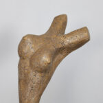 Composed of cherry wood shavings combined with bronze powder, the material itself reflects Overvelde’s experimental approach transforming residual matter into a cohesive, monumental presence. The sculpture balances physical weight with visual lift, holding a quiet intensity within its restrained abstraction.