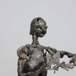An evocative and expressive iron sculpture by artist Anthony Binstead, created in the 1980s. The figure, built from welded metal sheets, conveys both strength and fragility. Its rough surface and elongated proportions evoke a deep sense of humanity reminiscent of the existential poise found in the works of Giacometti and Reg Butler.