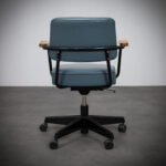 The Fauteuil Direction Pivotant by Jean Prouvé is one of the most recognizable office chair designs of the mid-20th century. Originally conceived in 1951 as part of Prouvé’s Direction office furniture series, the chair reflects his distinctive approach in which engineering logic and visual clarity are perfectly aligned.