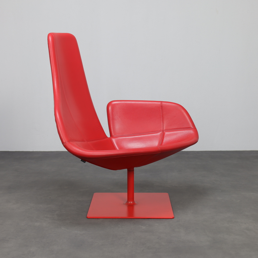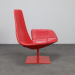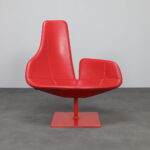 The Fjord chair, with its striking asymmetrical form and sculptural presence, is one of Patricia Urquiola’s most iconic designs. Inspired by the shape of eroded stones and shells, the chair merges organic softness with bold contemporary lines. The vivid red leather enhances its strong visual impact, making it both a statement piece and a comfortable lounge chair. Executed by Moroso, one of Italy’s leading design houses, this swivel chair exemplifies Urquiola’s talent for combining poetic design language with refined craftsmanship.