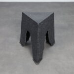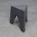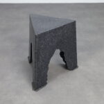A unique sculptural stool from Rutger de Regt’s experimental Make & Mold series, crafted from recycled polypropylene. With its raw texture and bold triangular form, the piece reflects an innovative reclaiming of industrial moulding techniques, where every object becomes one of a kind.